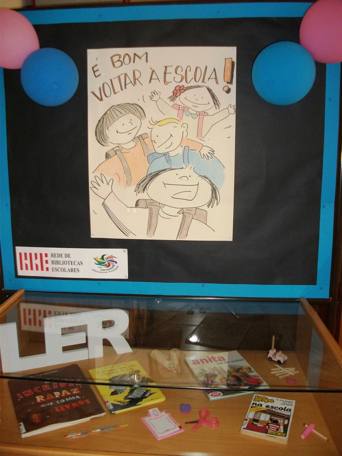 No interior, existe uma montra de livros, de modo a saudar os novos alunos. Serve de ponto de partida para as tuas novas leituras, neste início de ano.